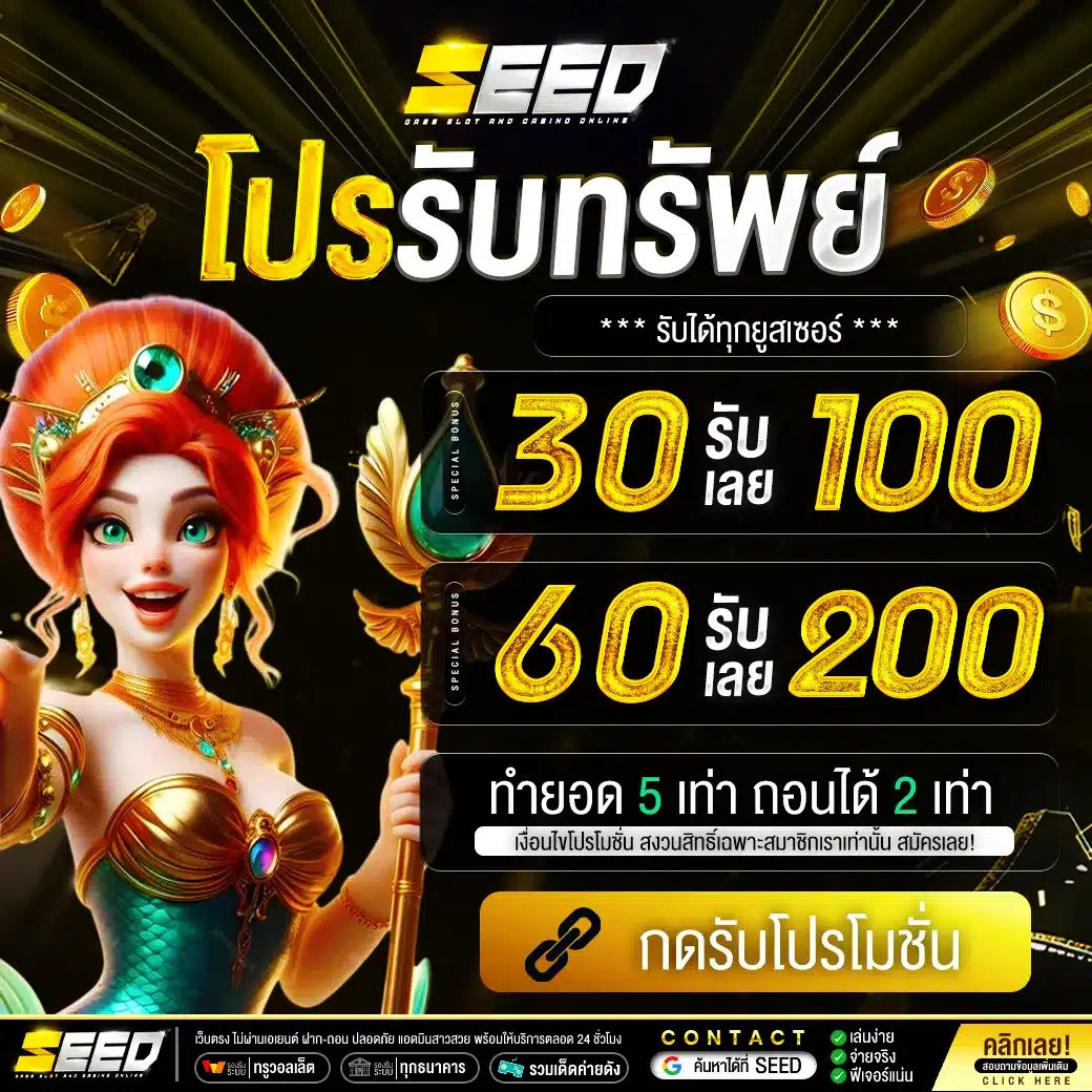 Seed ไม่ได้เน้นแค่เรื่องเกมหรือระบบเท่านั้น แต่ยังจัดเต็มโปรโมชั่นที่คุ้มค่าสำหรับผู้เล่นทุกระดับ ไม่ว่าจะเป็นโปรฝากครั้งแรก โปรรายวัน หรือกิจกรรมพิเศษต่างๆ ที่ช่วยปลูก Seed แห่งความคุ้มค่าให้กับทุกการลงทุน โปรส่วนใหญ่สามารถรับได้ด้วยตัวเองผ่านระบบออโต้ ไม่ต้องติดต่อแอดมินให้ยุ่งยาก ยิ่งฝาก ยิ่งเล่น ยิ่งได้โบนัสต่อเนื่อง กลายเป็นโอกาสทองสำหรับผู้ที่ต้องการสร้างรายได้จากเกมสล็อตอย่างจริงจัง